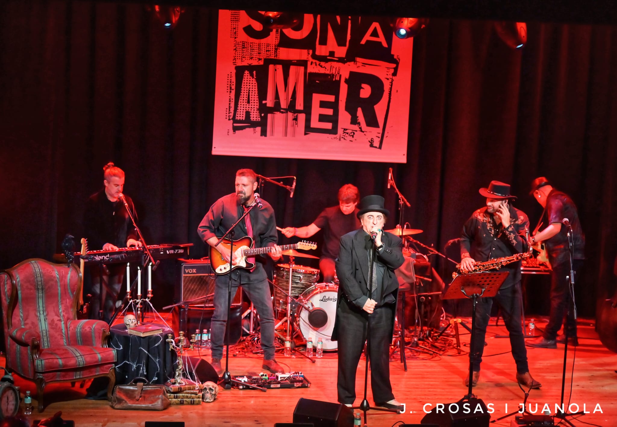 Aquest passat diumenge, 12 de gener, el Teatre El Casal d’Amer va vibrar amb l’espectacular actuació de Javier Gurruchaga i l’Orquestra Mondragón, que van inaugurar la 9a edició del Sona Amer. Amb un aforament complet des de feia setmanes, el públic va omplir el teatre per gaudir d’una vetllada inoblidable marcada per l’energia, l’humor i el talent d’aquesta formació llegendària.